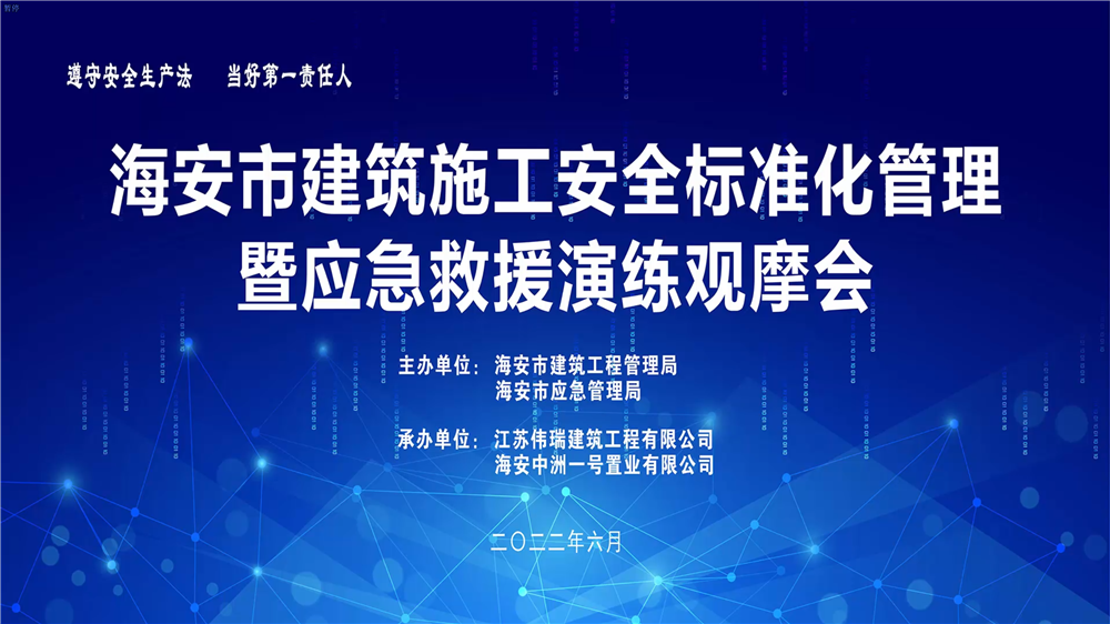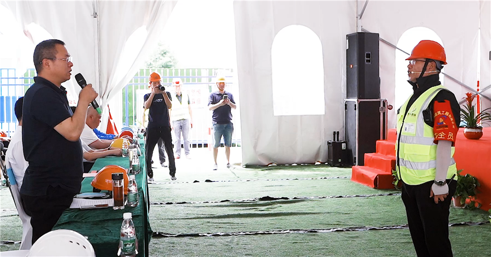 為認真貫徹落實習近平總書記“從根本上消除事故隱患,有效遏制重特大事故發(fā)生”的重要指示精神,推動全國安全生產(chǎn)專項整治三年行動圓滿收官,6月19日上午,由市建管局、市應急管理局主辦,江蘇偉瑞建筑工程有限公司和海安中洲一號置業(yè)承辦,在中洋金鑲玉118項目一標段工地,舉行海安市建筑施工安全標準化管理暨應急救援演練觀摩會,目的是進一步強化“以人為本”的安全生產(chǎn)理念,落實“遵守安全生產(chǎn)法 當好第一責任人”的安全生產(chǎn)月主題活動要求。 市人民政府副市長周小軍、市建管局副局長儲祥文、市應急管理局副局長顧宏俊、建管局質安科、安監(jiān)站等部門負責人以及各區(qū)鎮(zhèn)、街道辦事處建管工作牽頭人、各企業(yè)安全工作負責人、市在建項目項目經(jīng)理參加了此次活動。