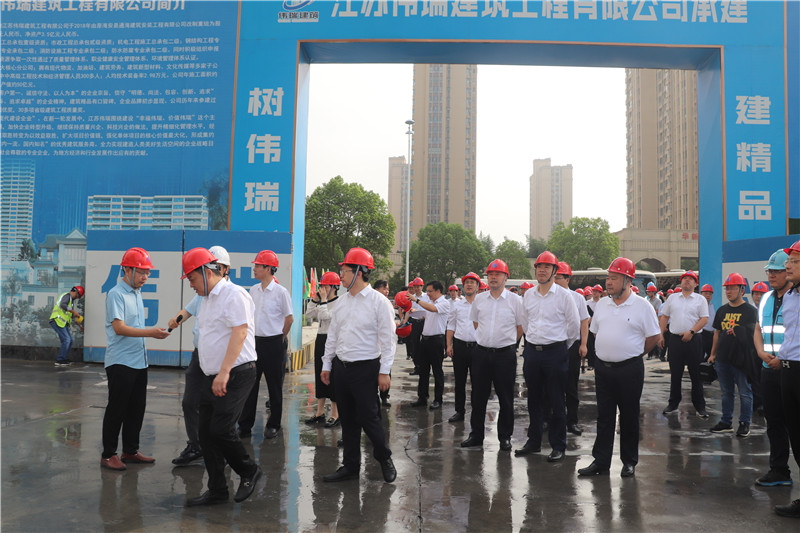 9月17日上午,海安市委書記于立忠率團(tuán),來到中洋金鑲玉項(xiàng)目部一標(biāo)段進(jìn)行視察。海安全體市委常委、人大、政協(xié)主要負(fù)責(zé)人、市委辦、政府辦負(fù)責(zé)人、各部門負(fù)責(zé)人以及各區(qū)鎮(zhèn)負(fù)責(zé)人陪同視察。公司董事長、總經(jīng)理王興明帶領(lǐng)公司部門負(fù)責(zé)人和項(xiàng)目部全體人員參加活動。